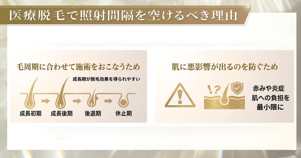 ここでは、医療脱毛で照射間隔を空けるべき2つの理由について解説します。