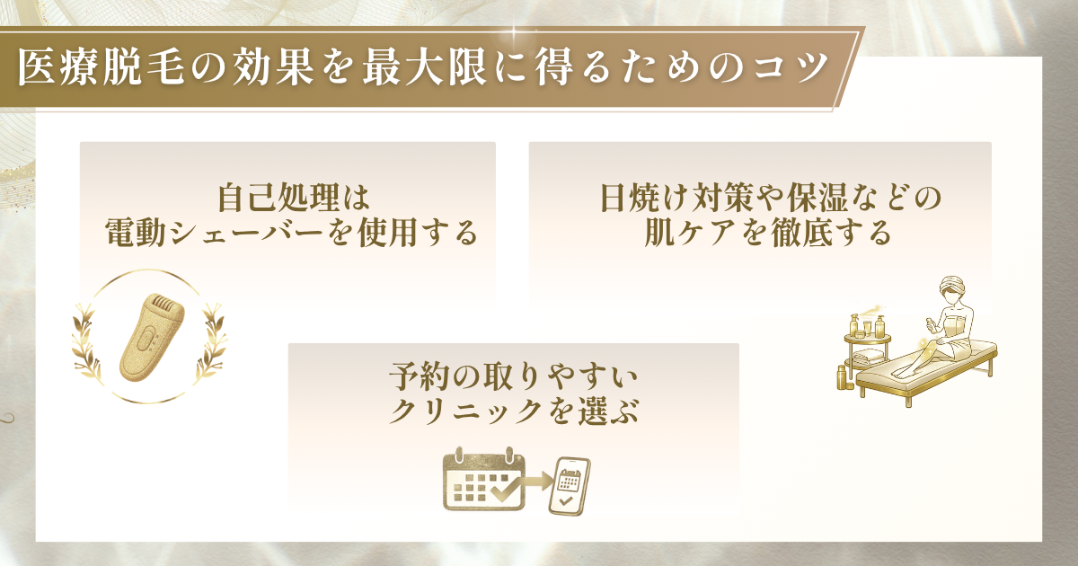 ここでは、医療脱毛の効果を最大に得るための3つのコツを紹介します。