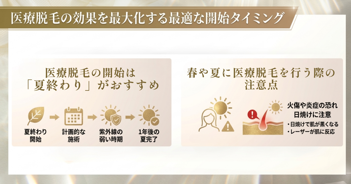 医療脱毛の効果を最大化するためには、照射間隔のみでなく開始するタイミングも重要です。