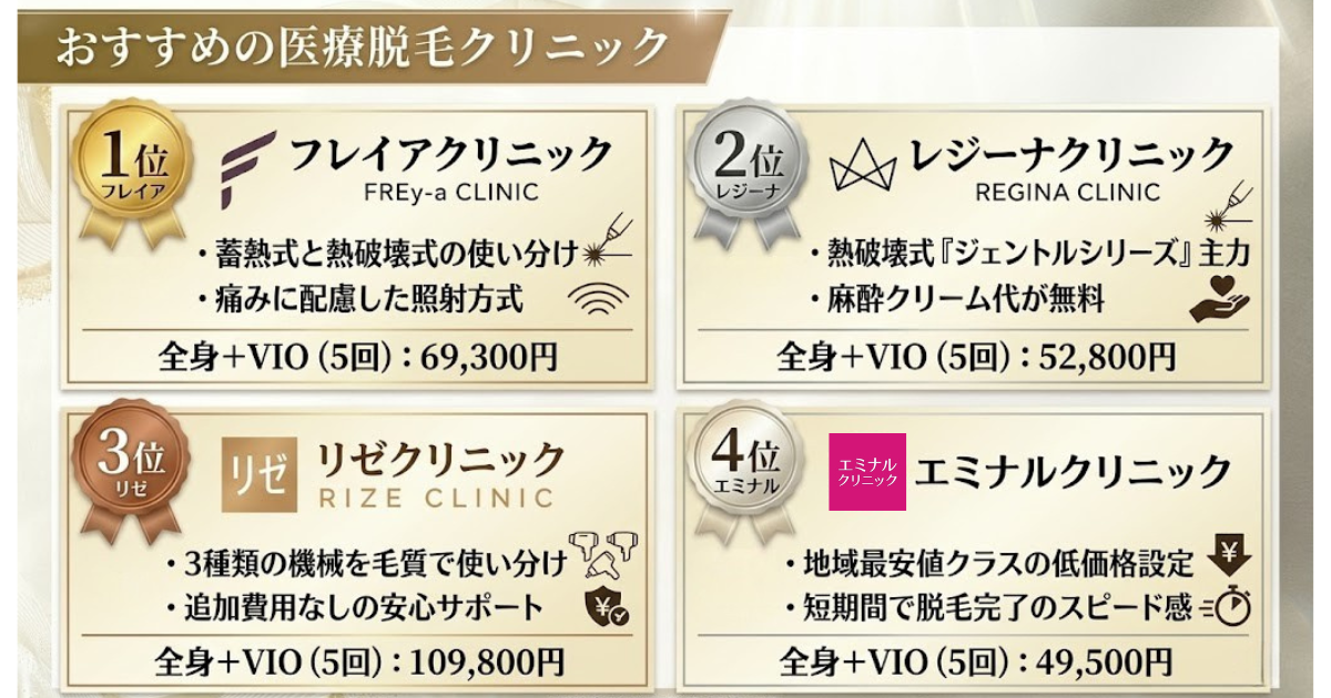 そこでここからは、初めて医療脱毛を受ける方にも検討しやすく、実績やサポート体制にも定評のあるクリニックを厳選して紹介します。