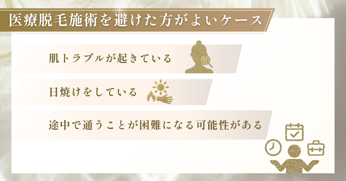 ここでは、医療脱毛施術を避けた方がよい主な4つのケースを解説します。