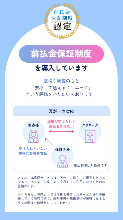 そこで、フレイアクリニック契約を検討している方の懸念を不安を解消するため、「前払金保証制度」を導入しました。